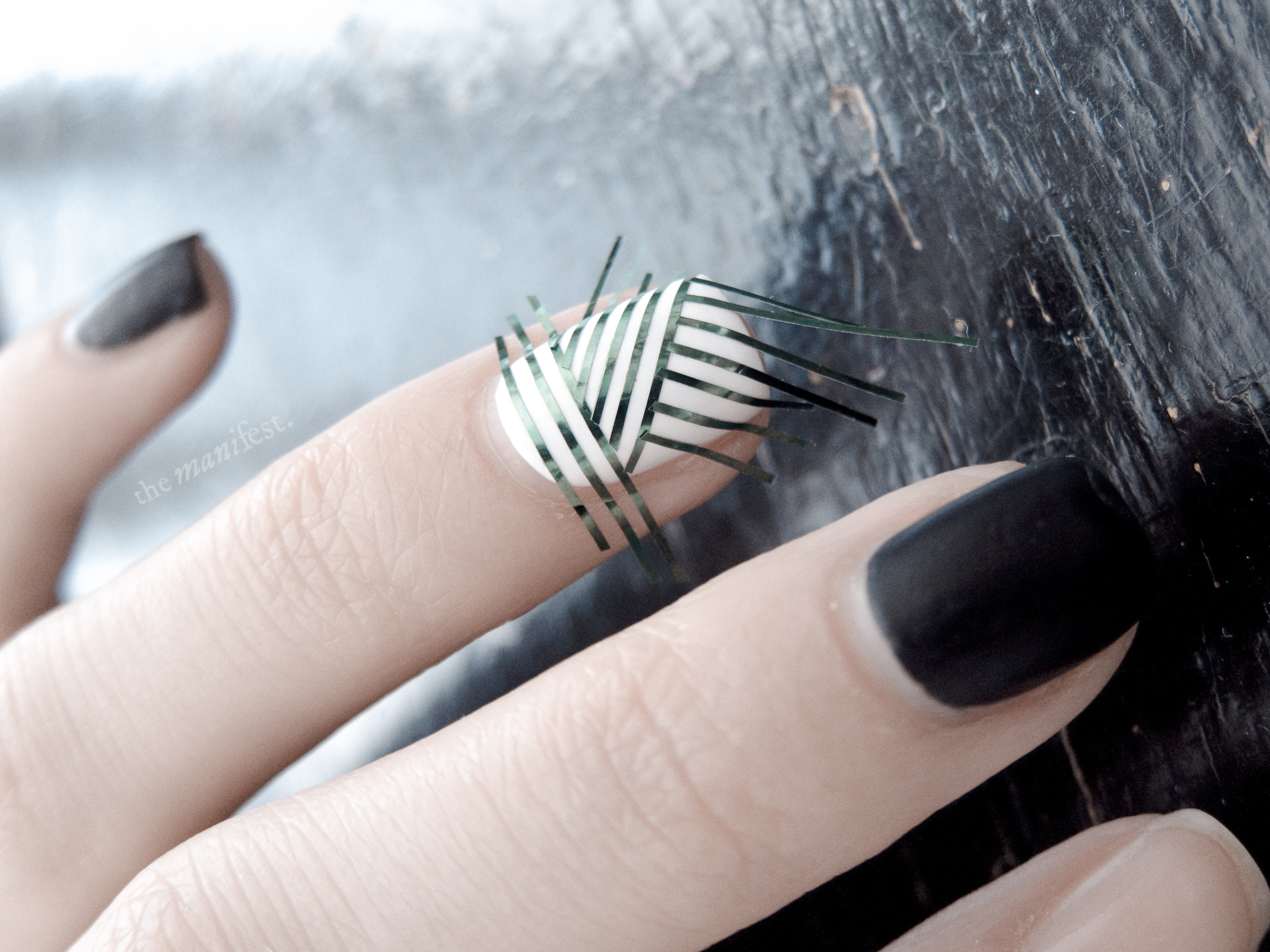 Black and white nail art, stiping tape