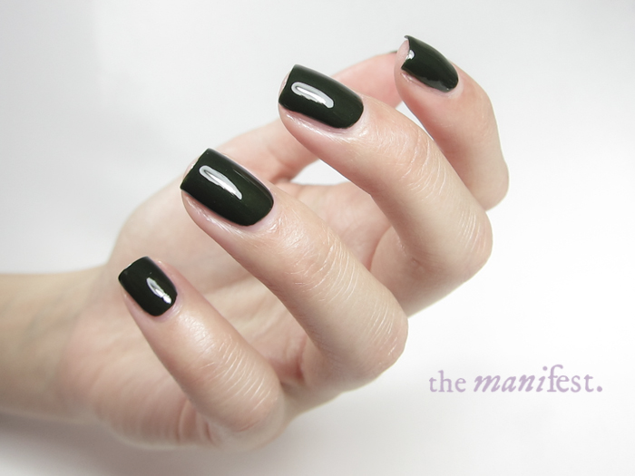 Cuccio Glasgow Nights 1 coatCuccio Glasgow Nights 1 coatGlasgow Nights is first up. This is a warm toned dark forrest green, a shade I often crave for fall. In poor lighting this can be mistaken for black, but most of the time it’s a beautiful deep green. It’s also a one-coater! Dries fairly glossy, but I topped it with Seche Vite. I have some possible dupes, keep an eye out for a comparison post.