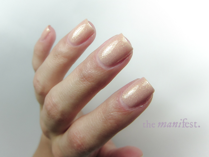 Cuccio Los Angeles Luscious 3 coatsLos Angeles Luscious is a warm beige with lots of gold shimmer. Nude de luxe! This is what I hoped Essence Irreplaceable would be. Two thick coats here, no top coat. I wore this as a full mani a few weeks ago, for two whole days without boredom or chipping which is rare in my world.